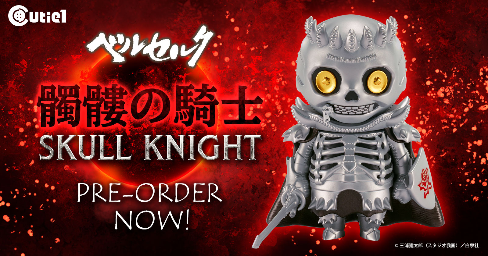 CUTIE1 is proud to present our latest SKULL KNIGHT from the Berserk series!! This adorable figure will be available for pre-sale at “The Great Berserk Exhibition”